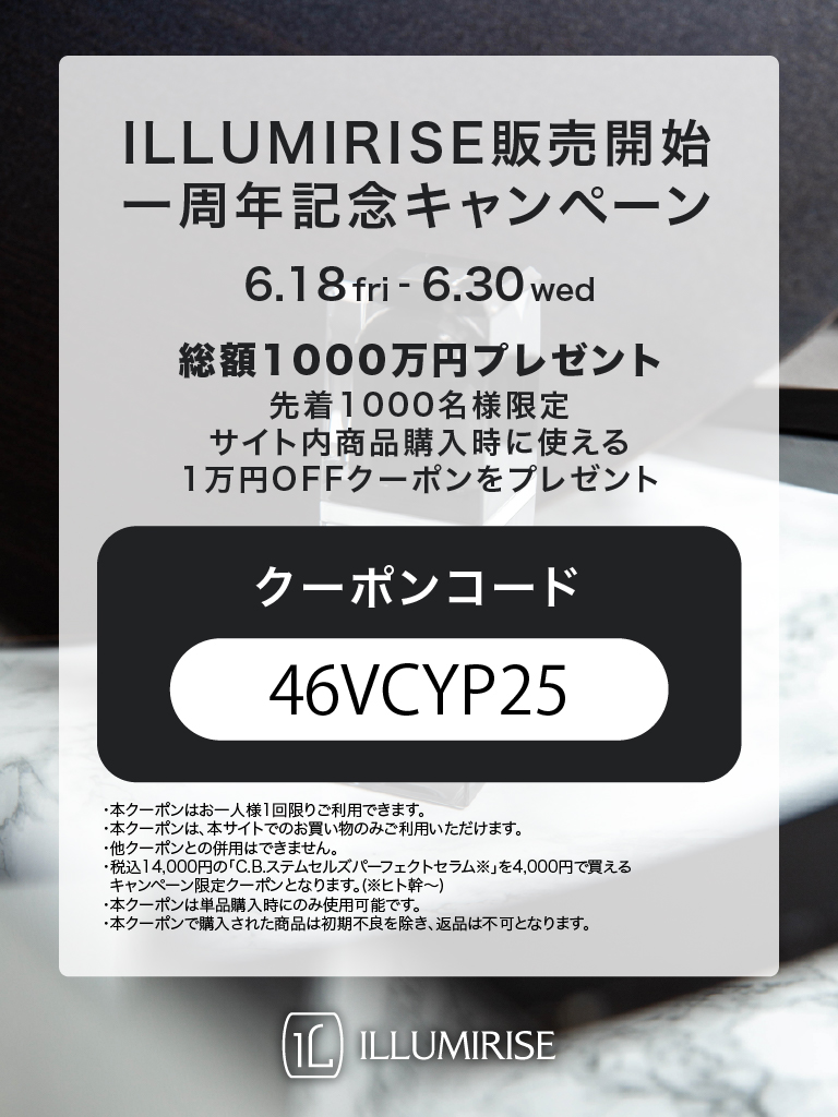 ILLUMIRISE『C.B.ステムセルズパーフェクトセラム』は、6月18日、販売1周年を迎えることができました!